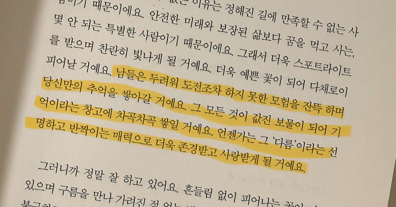 - 남과 비교하지 않기: 어제의 나보다 조금만 나아지면 됩니다.